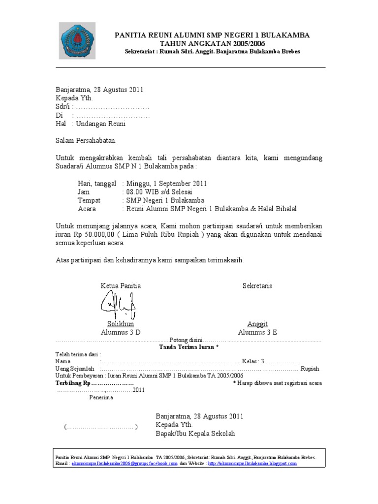 Reuni 1 dekade smp negeri 1 blitarlulusan 200510 years and still countinga. Anda ingin membuat kegiatan di sekolah? Download contoh proposal kegiatan reuni smp reuni smp negeri 1 kenangan dikala remaja semasa sekolah yang penuh dinamika terukir dengan manisnya disebuah gedung sekolah di timur… Contoh proposal reuni akbar sma neg. Kenangan dikala beranjak remaja semasa sekolah yang penuh dinamika terukir dengan manisnya.